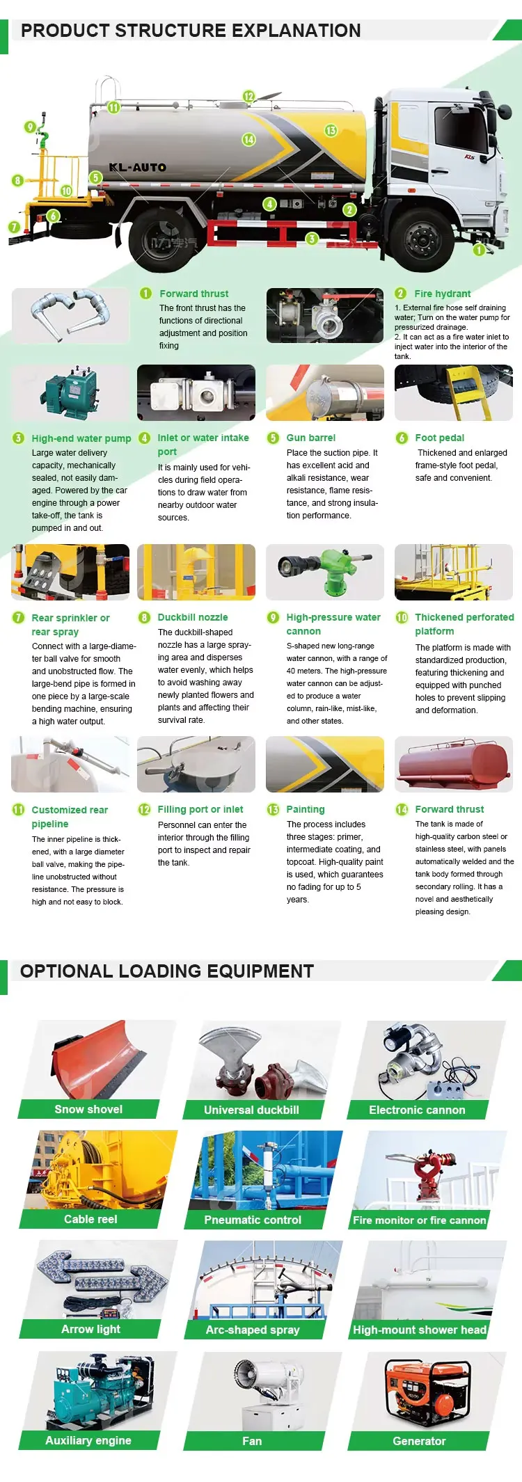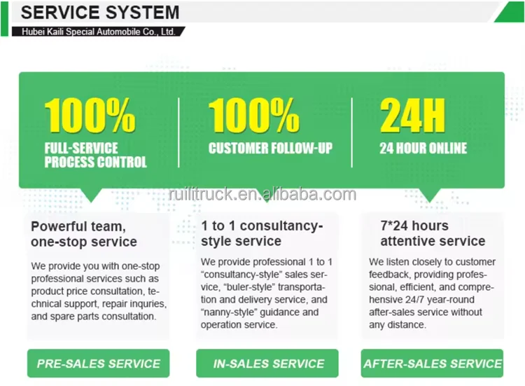 We provide one year warranty for the truck including chassis, engine and gearbox, free replacement of superstructure vulnerableparts within one year as well, We will prepare consumables in advance.