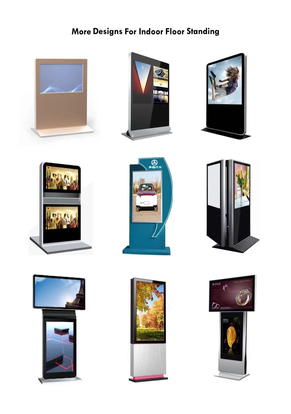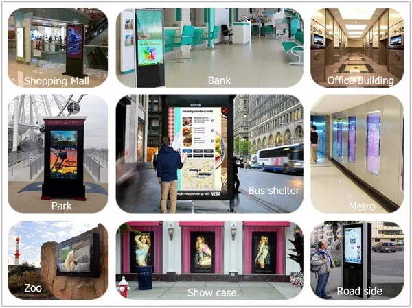 LCD digital displays are widely used in our daily life:Stores,Hotel,Airport,Waiting room,Bus station,Amusement park,Road side,Shopping mall,Show case,Bank,Metro,Street center etc...