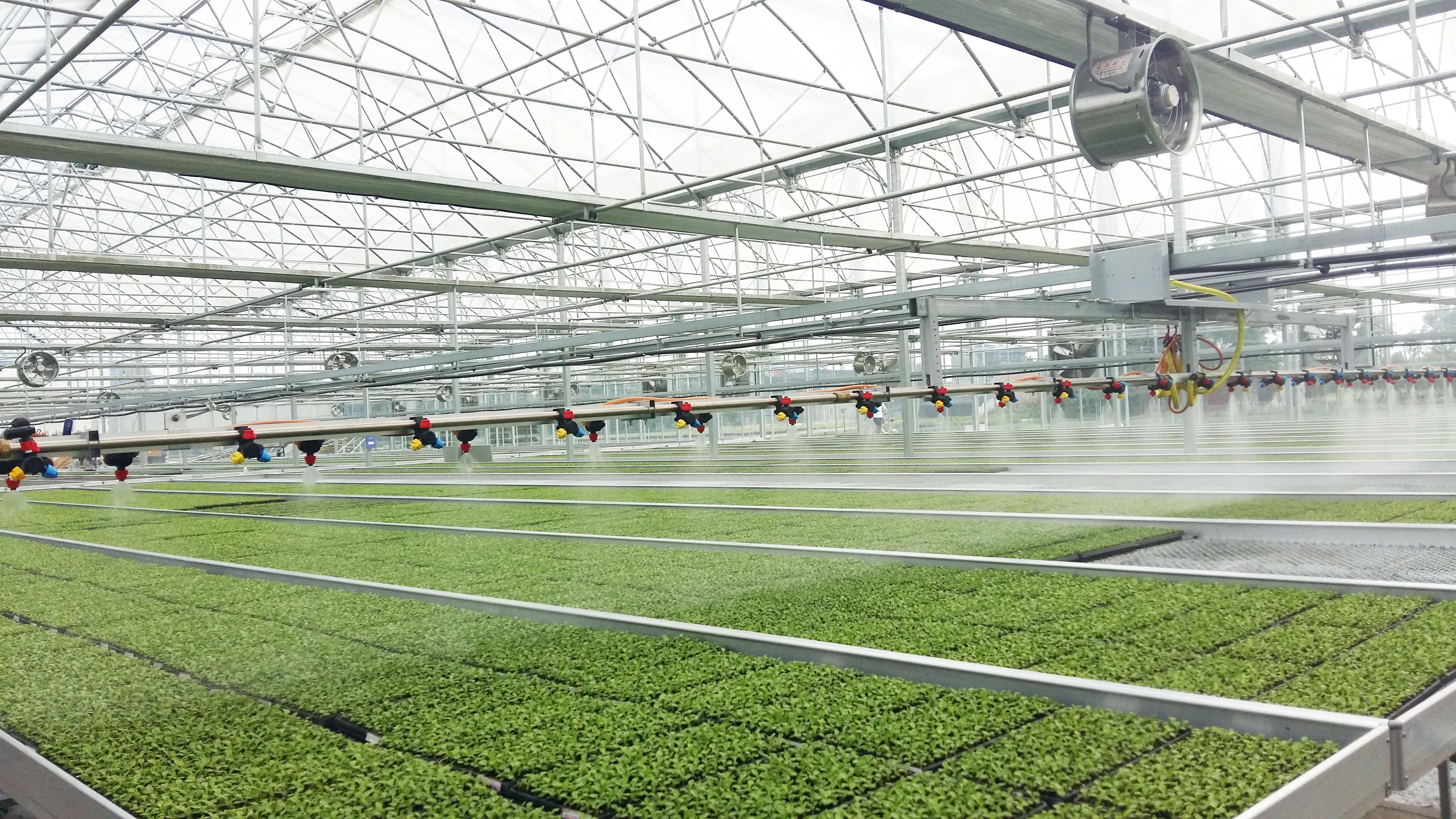 Mobile sprinkler for greenhouse is a kind of water-saving and fertilizer-saving, uniform sprinkler irrigation method, which is suitable for indoor top can be hanged occasions. It consists of main machine, beam, boom, sprinkler pipeline, etc. It can realize automatic round trip and remote control through control box.
