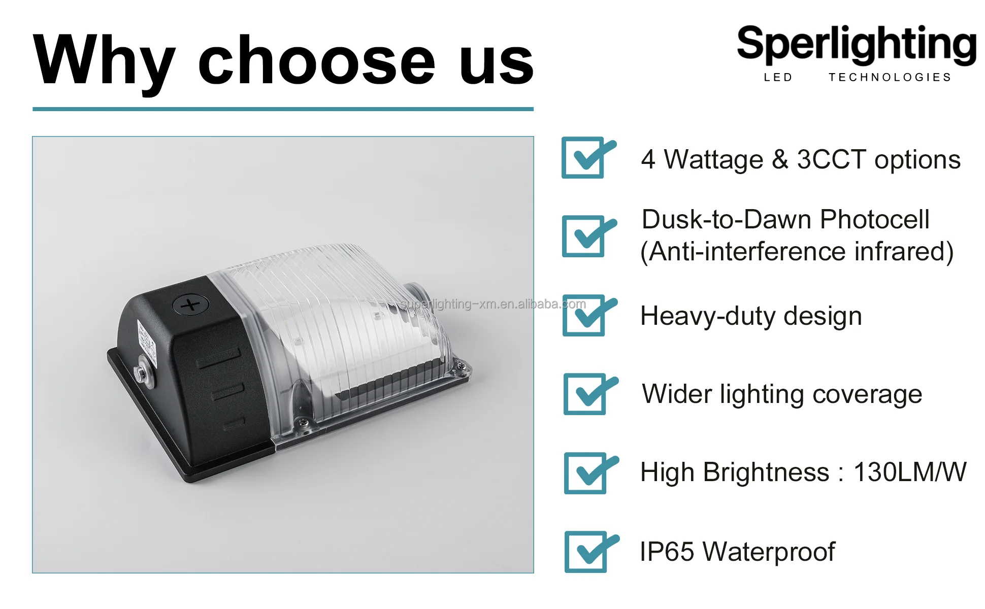 The LED Mini wall pack is offered 5 years warranty against any defect in materials and workmanship, covers most damage and shipping costs for replacements. Contact us for any quality issues.