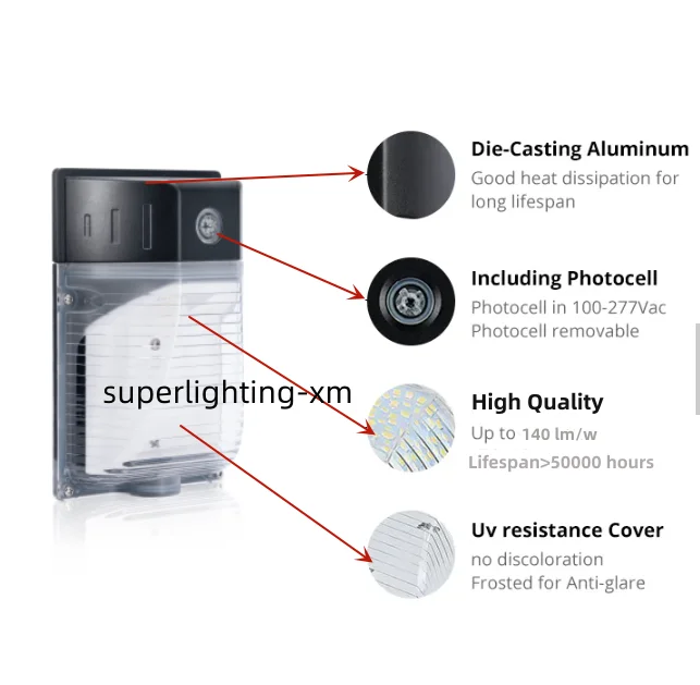 * Automated dusk-to-dawn photocell functionality. The outdoor wall pack lighting can automatically light OFF at sunrise/daytime and light ON at sundown/night ensuring efficient energy usage。