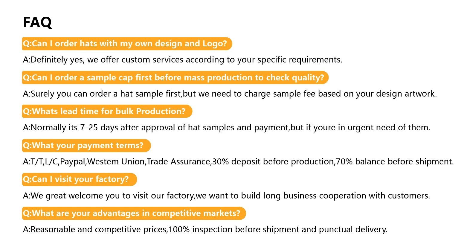 8.Price Term | FOB | Basic price offer depends on final cap’s quantity and quality | |