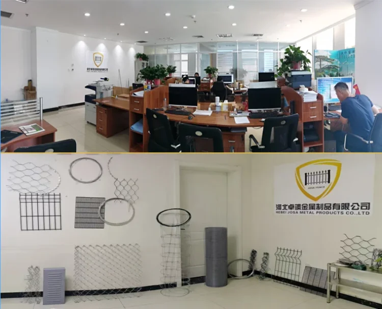 Anping Josa Wire Mesh Products CO.,LTD is engaged in production and exportation of steel fence, 868 high security fence, palisade fence,welded mesh fence, chain link fence, razor mesh fence, farm fence and gates, noise barriers,temporary fence for industrial and commercial application etc. We can also customize metal products as clients special request.