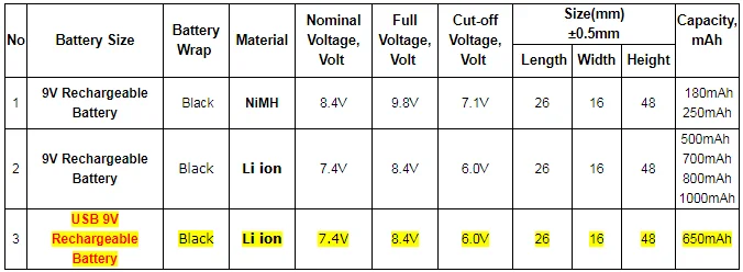 Rechargeable | Prismatic | |||
