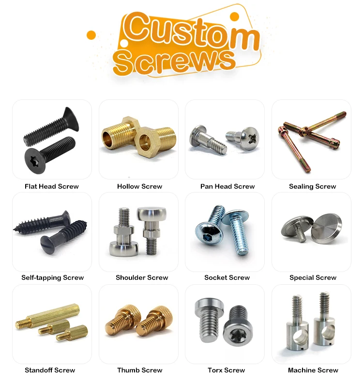 1.How can I get custom screw sample? Yes, just need sample cost, we will return it back in mass production. We also provide free samples in special conditions. 2.How about the lead time? It depends on quantity, generally 7-20 days after order confirmation. 3.Can you give me help if my products are very urgent? Yes, we will try our best to give you help. Because we have our own factory to produce. We can flexible to adjust our production schedule. 4.I want to keep our design in secret, can we sign NDA? Sure, we will not display any customers' design or show to other people, we can sign NDA. 5.Can we know the production process without visiting the factory? We will offer a detailed production schedule and send pictures and videos which show the machining progress.