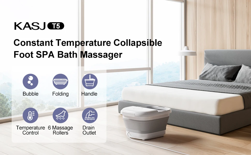 1.Support rod, handle ,bubbles, red light. 2.Heating. Temperature range from 105°F to 113°F/ 41℃ to 45℃, 3.Drain outlet. No need for manual water pouring, unique design drains more cleanly. 4.Removable 6 Massage Rollers. It will gently massage the soles of your feet, and a relaxing pedicure foot spa atmosphere for you. 5.Timeing. It can adjusted from 20 or 60mins. 6.Dust cover: Help to isolate dust, improve insulation effect. 7.Incredible Collapsible Foot Spa. It is easy to fold this foot soaking tub without any extra tool. 8.Removable Remote Control: The magnetic remote control provides a more convenient and reliable way of controlling the foot spa. | |
