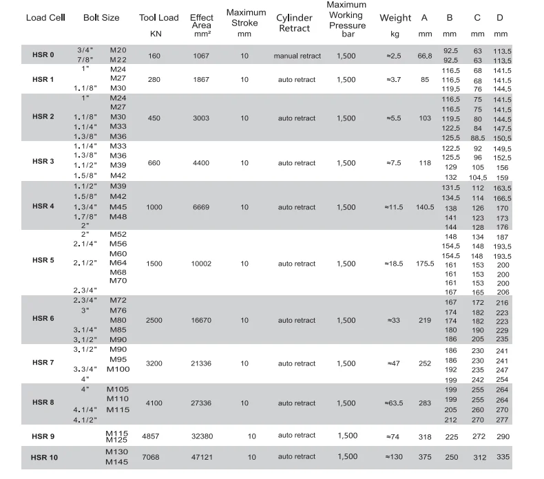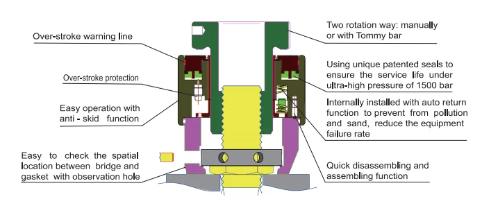2.Widely used in the petrochemical industry, there are 10 standard models with a maximum load of 7068 kN, a maximum stroke of 10 mm and a maximum working pressure of 1500 bar.High strength materia, small dimension with compact structure, light, convenient to carry.