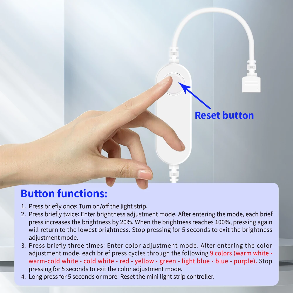 1. Power on the light strip controller (within 4 seconds, proceed to the next step).