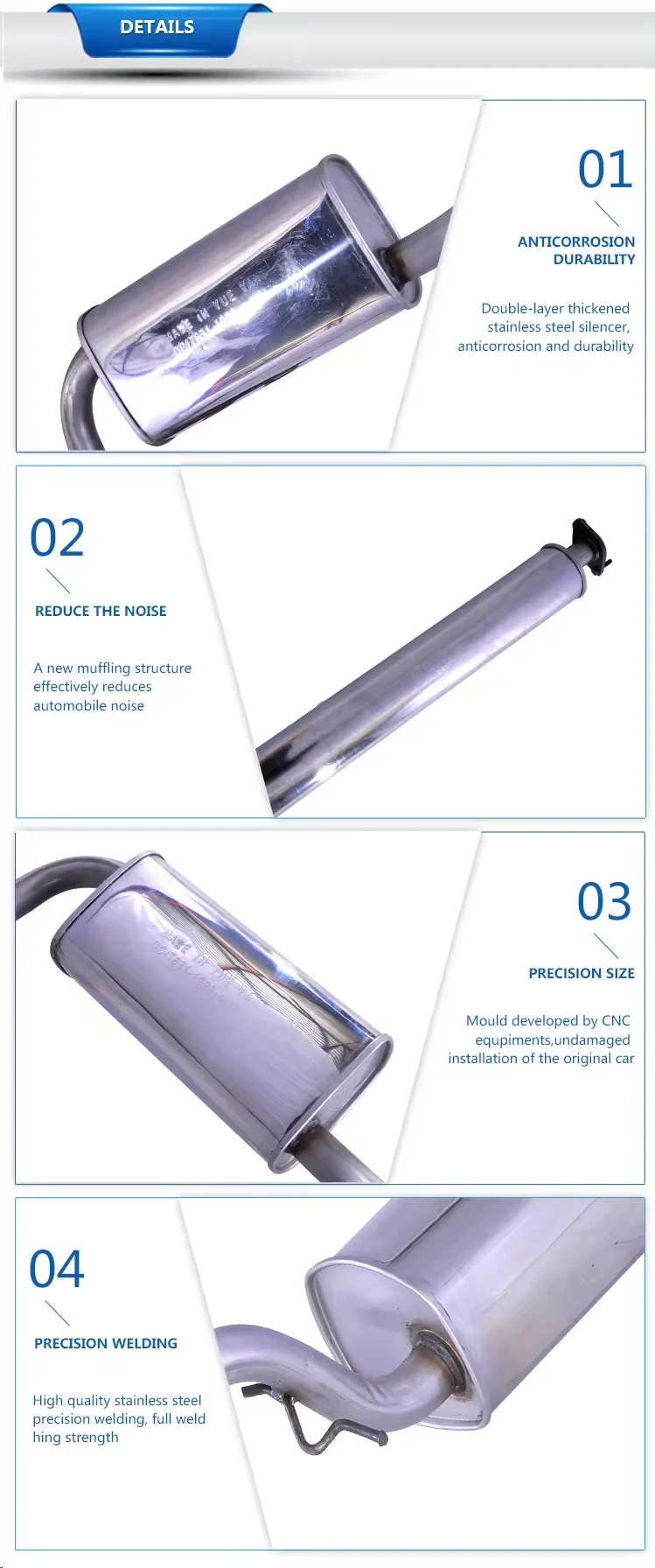 Q1.Are you a direct manufacturer or a trading company? A:We are a manufacturer to produce exhaust system parts, owning both factory.And we also have our own international trade department,producing and sell ourselves.