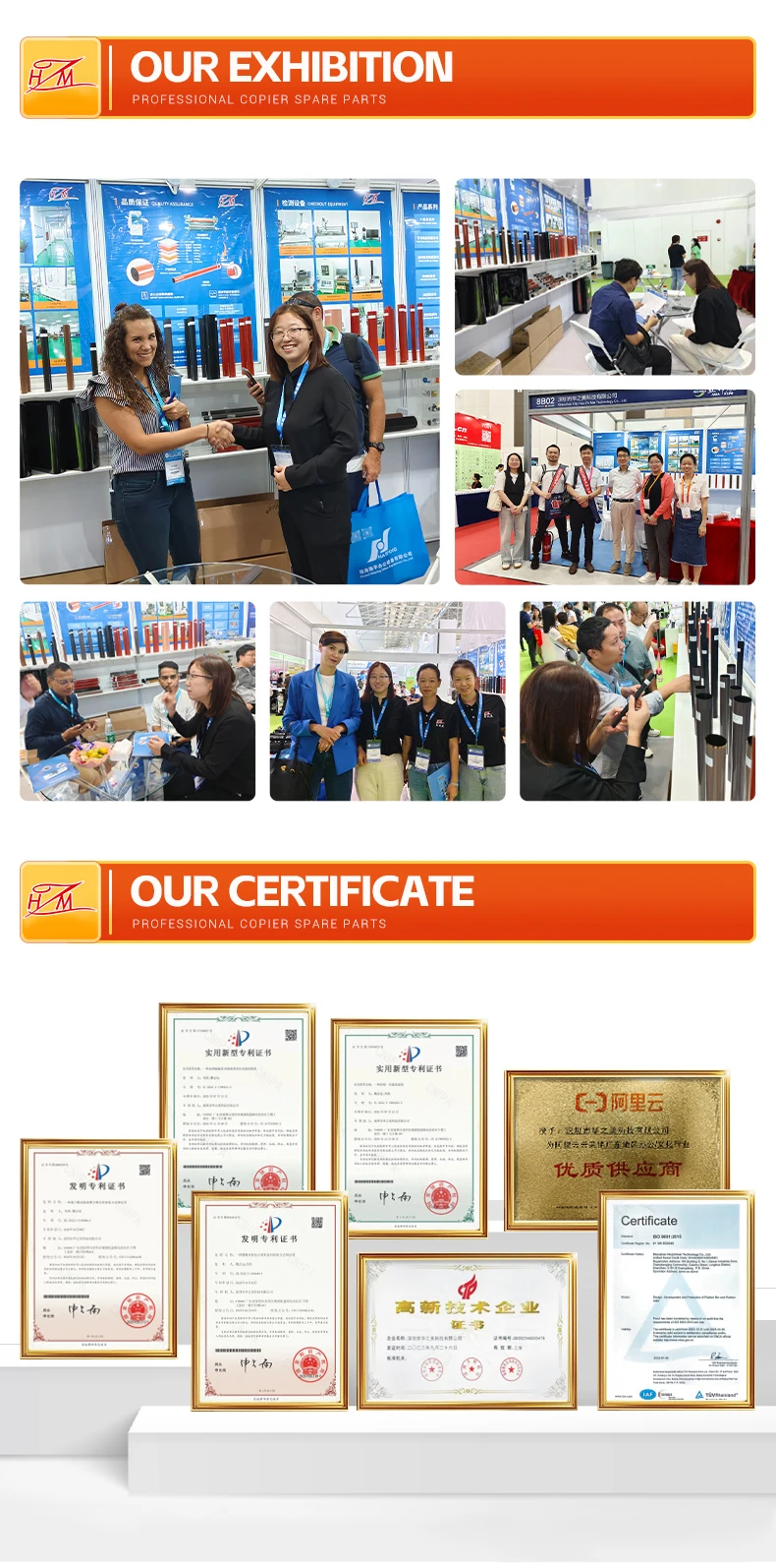 Since 2013, Company has been focusing on the development, production and sales of corecomponents of laser copying machines and printers such as Xerox, Ricoh, Canon and Konica Minolta,It provides various types of fuser film /fuser roller /transfer belt, and provide OEM&ODM development.production, and sales services from raw materials to finished products.Core products includes: Polyimide sleeve (Pl sleeve), fuser film, pressure film, fuser upper roller,pressure roller, transfer belt, electrostatic conveyor belts and other key parts. The enterprise haspassed the lS09001 quality management system certified by TUV in Germany, and has a strictproduction management system and quality control process to ensure the stable product quality.Company technical backbone is set up by the development team of a famous Japanese company. lthas nearly 20 years of experience in developing core components and other related technologies.Through the technical precipitation and perpetual research of the R&D team, we have successfullybreak through key core technologies such as polymerization modification of polyimide materials andproduction film-forming and precision control of electrification characteristics, and have beensuccessfully applied in products such as fixing films and transfer tapes. Simultaneously obtainingpatent certificates for multiple technological inventions and utility models.As of August 2023, various types of polyimide films the pipe diameter p 18~p450, thickness 30-200um have been successfully mass-produced. And new production lines have been set up in the thirdquarter of 2023, achieving a fully automatic production line for polyimide films and transfer tapes.(Annual production: Fuser film 3 milion, transfer belt 150000 for A4 size, 300000 for A3 size)Meanwhile, the regeneration business of the fuser has been gradually launched.Adhering to the service concept of 'integrity, innovation, reliability and win-win, Company constantlyexpands it's product fields, focusing on the core parts of laser copy printer, being customer-centric, andcommitted to becoming a core solution provider for fuser and transfer systems!