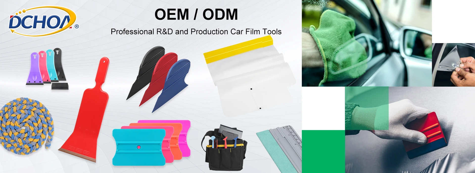 Features | --Multiple sizes for choosing Suitable for different application uses. --Hallow handle design Portable holding,easy for working. --Soft scraper rubber Suitable for uneven or soft surfaces, achieving bubble-free adhesion. |