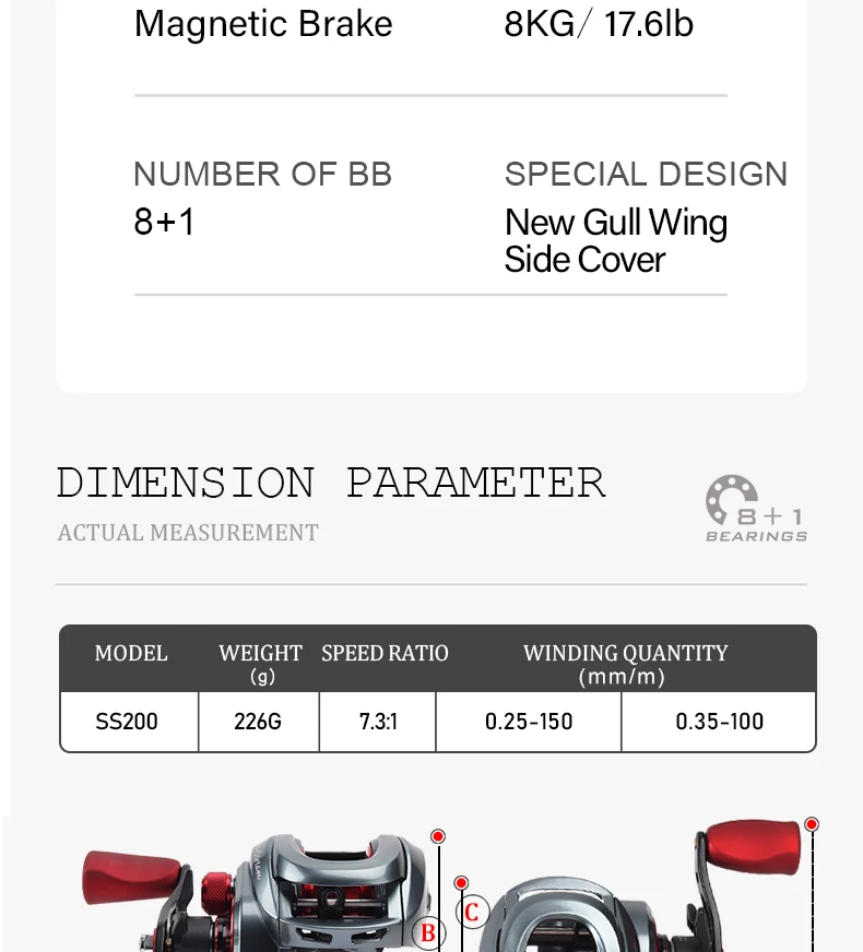 New Fishing Scroll 8+1bb Baitcaster Reel 8kg Drag 7.3:1 Gear Bait Casting Baitcasting Fishing Reels Saltwater |