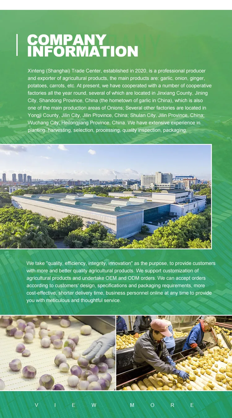 Q: Why did you choose us? A: We have extensive experience in planting, harvesting, selection, processing, quality inspection, packaging, refrigeration, transportation, and export. Support customization, more cost-effective, and shorter delivery time. Q: Can I get a discount? A: Yes, there are different discounts for different quantities. Please contact us for more detailed information. Q: How long does your stocking period take? A: The goods will be shipped within 7-15 days after receiving the advance payment. Q: What payment methods do you support? A: L/C, Credit Card, Cash, West Union, MoneyGram, Paypal, TT . Q: Can we take on OEM and ODM orders? A: Yes, we accept OEM and ODM orders to fully meet your needs. | ||