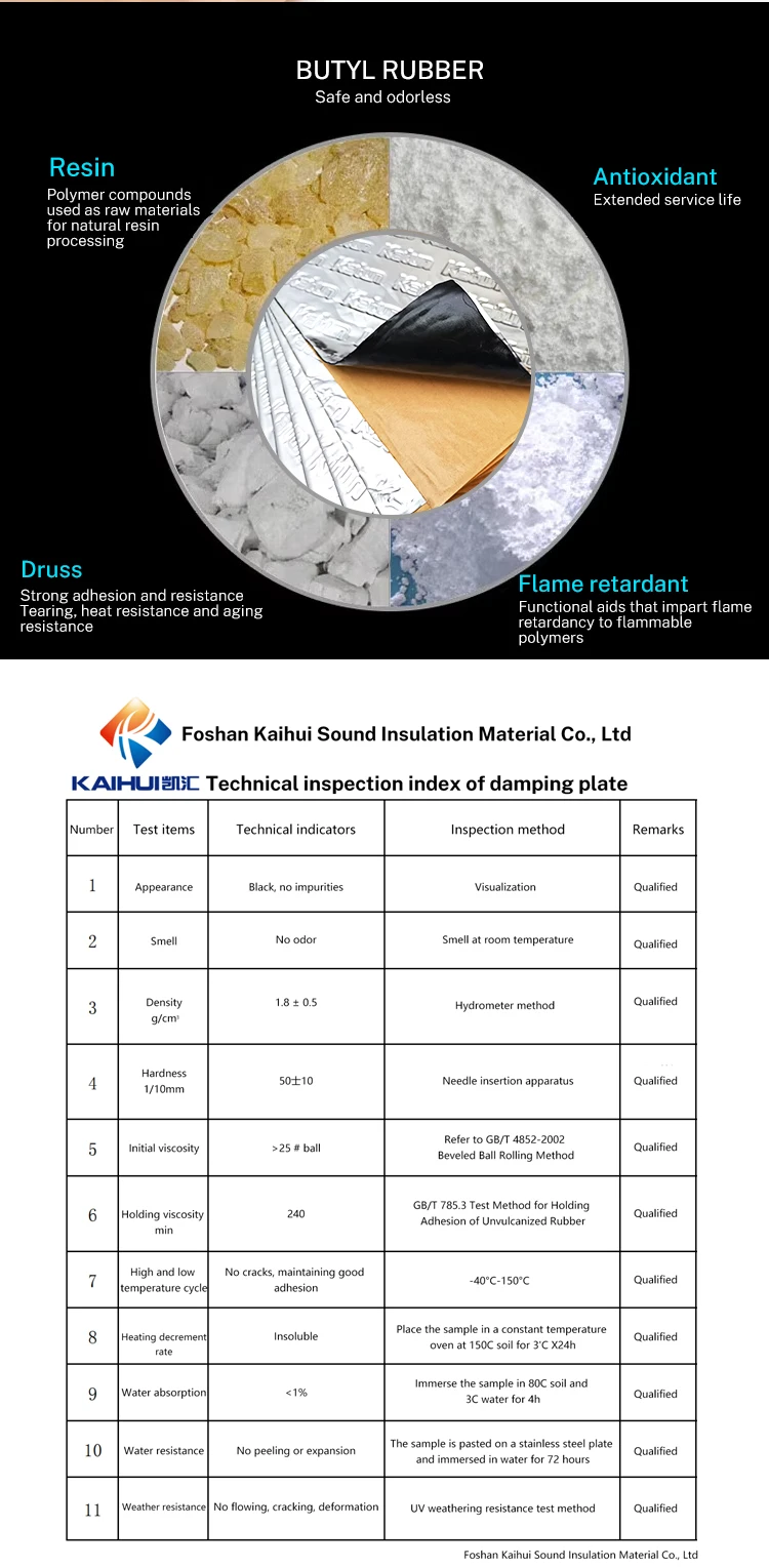 More Properties | Sound insulation and shock absorption, strong damping functional materials, commonly used in the acoustic field of automobiles, high-speed railways, ships, pipeline construction, and other acoustic fields. |