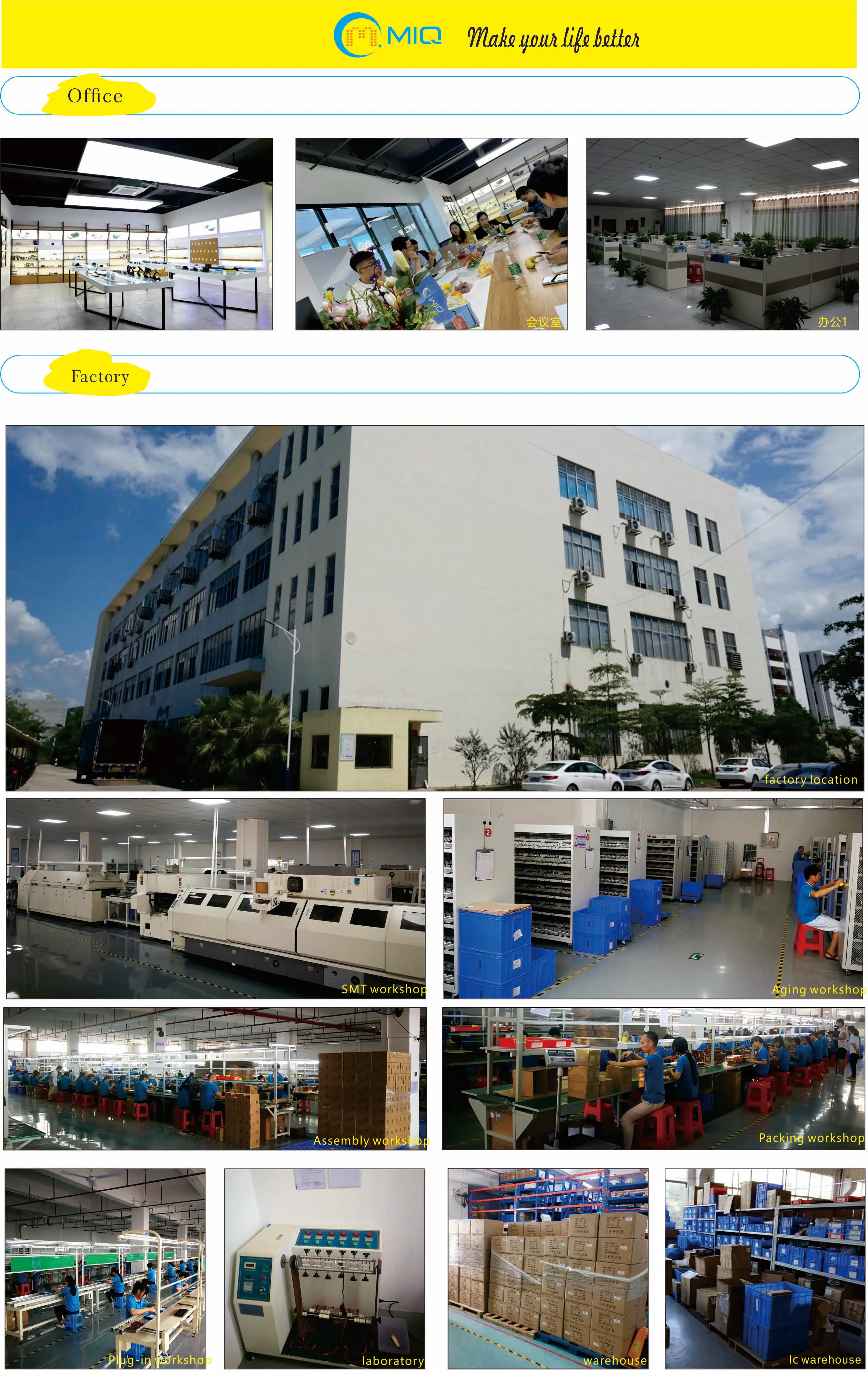 Our factory has been certified by ISO-9001,BSCI,SEDEX and other authoritative global organizations.Our factory has more than 10 years of experience in R&D and production.We have our own SMT equipment, injection molding equipment, aging equipment, CNC processing equipment.From mold manufacturing, injection molding, aging, testing, assembly, packaging and other integrated production lines. Factory overview is 20000 square meters area with 500 skillful workers. We have strict quality detection in all