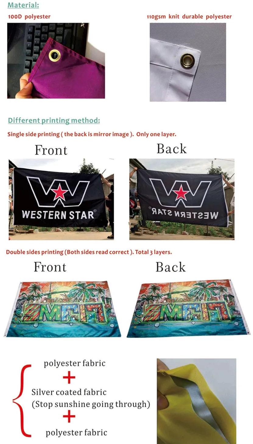 Materials used | 65g polyester,110g/135g/250gknitted polyester, 80g/150g/230g satin fabric, 550gpvc |