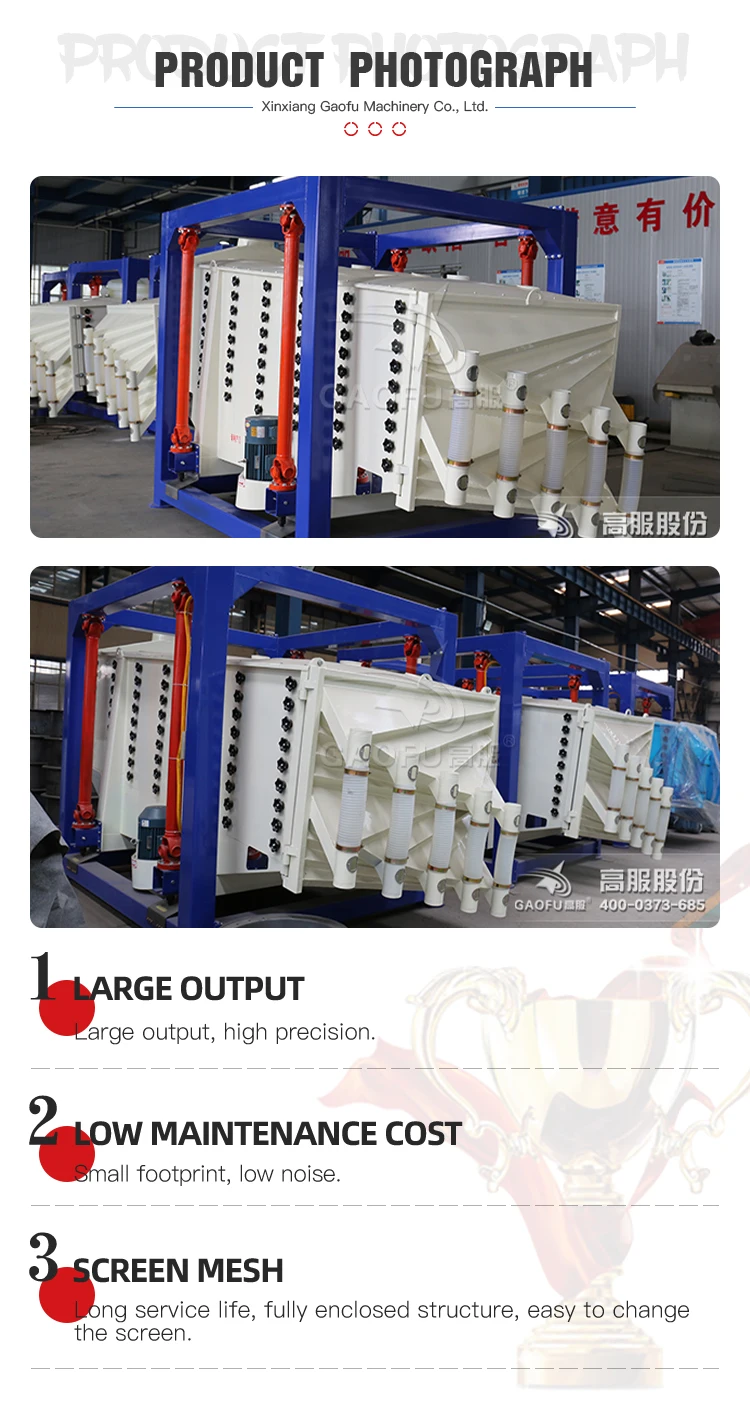 The square sand sifting machine is a high-efficiency screeningequipment with high precision and large output. It has excellentself-cleaning effect,high utilization rate of screen and long life,and good sealing effect.