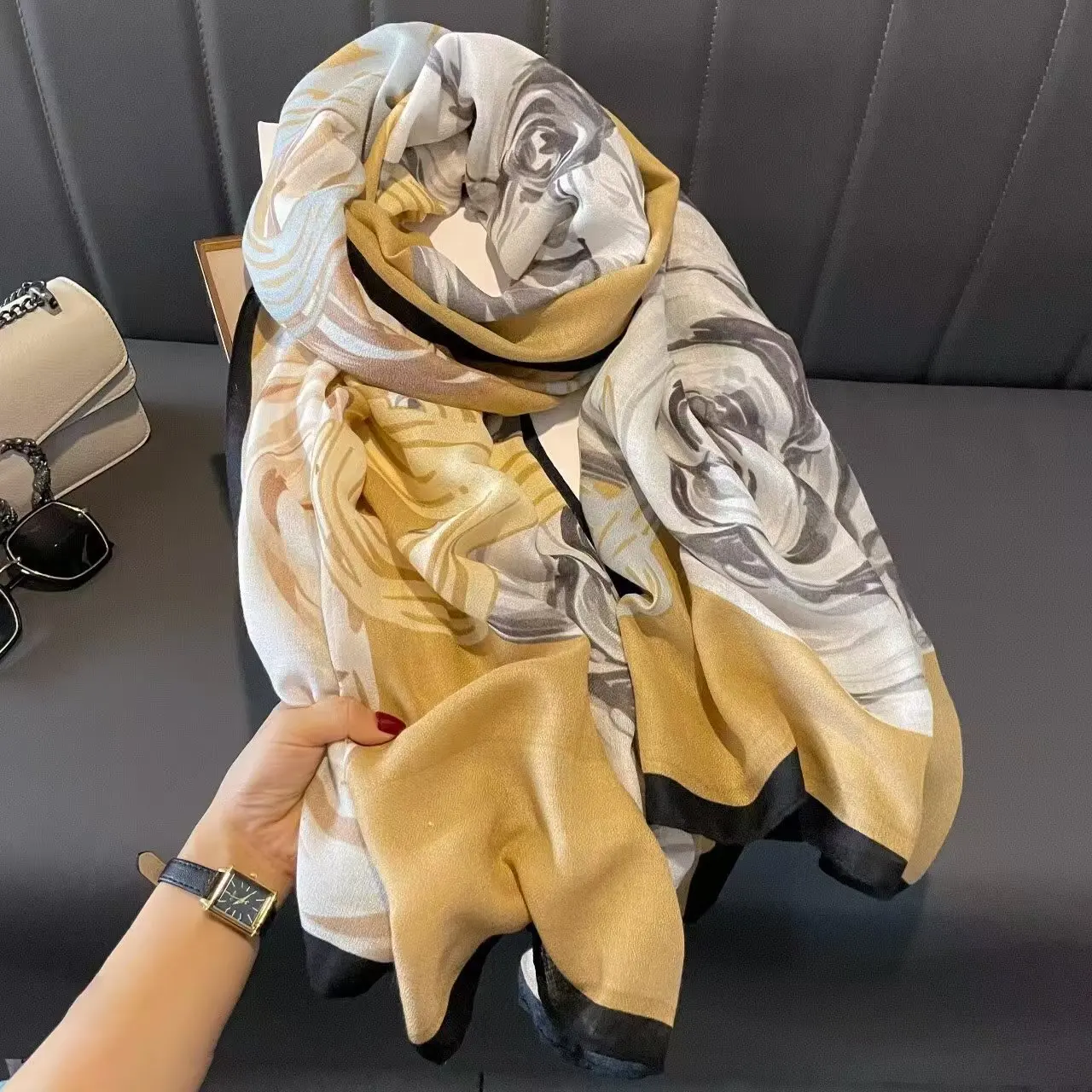 2.Premium Material: Crafted from high-quality polyester and viscose, this scarf offers both comfort and durability. The soft, breathable material is suitable for both spring and autumn use, making it a versatile addition to any wardrobe.