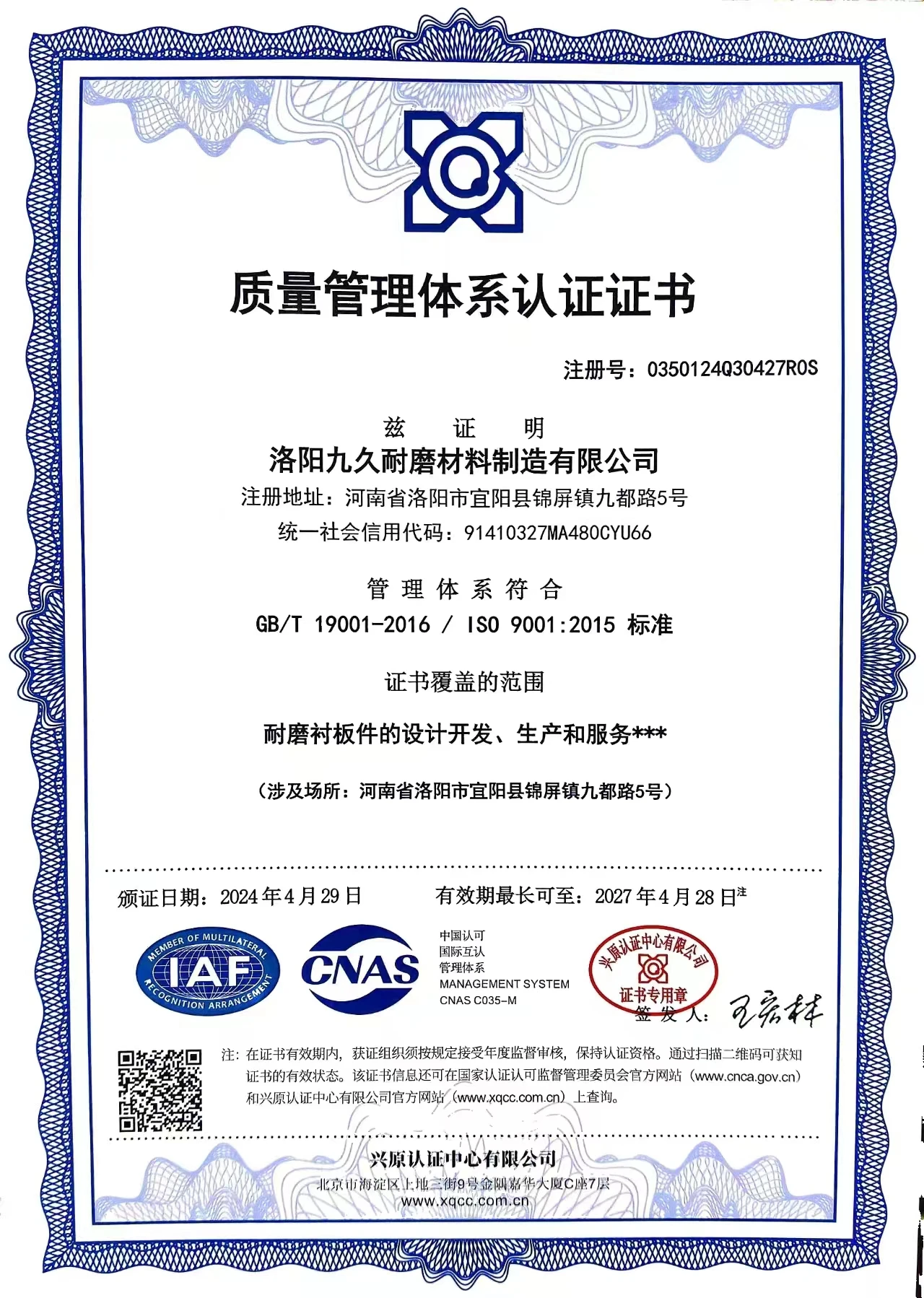1, Establish and implement a quality system according to the ISO9001:2015 standard, establish the concept of "quality first, user first" among all employees, produce products that satisfy users with first-class work quality, and provide services that satisfy users.