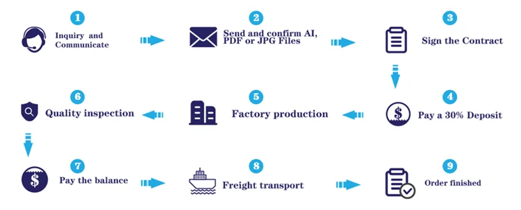 Ocean Shipping from China to your local port, then deliver to your place by Fedex or UPS. (We are responsible for customs clearance and tax at the export port and the destination port) Low freight but long transportation time. About 20-30 days. Suitable for heavy, large quantity or large volume goods. | Air transport from China to your local port, then deliver to your place by Fedex or UPS. (We are responsible for customs clearance and tax at the export port and the destination port) Good price and faster transportation time than by sea. About 10-15 days. Suitable for goods heavy under 300kg. | Expensive and the fast shipping option. Delivery time is about 2-5 days. Suitable for urgent goods. |