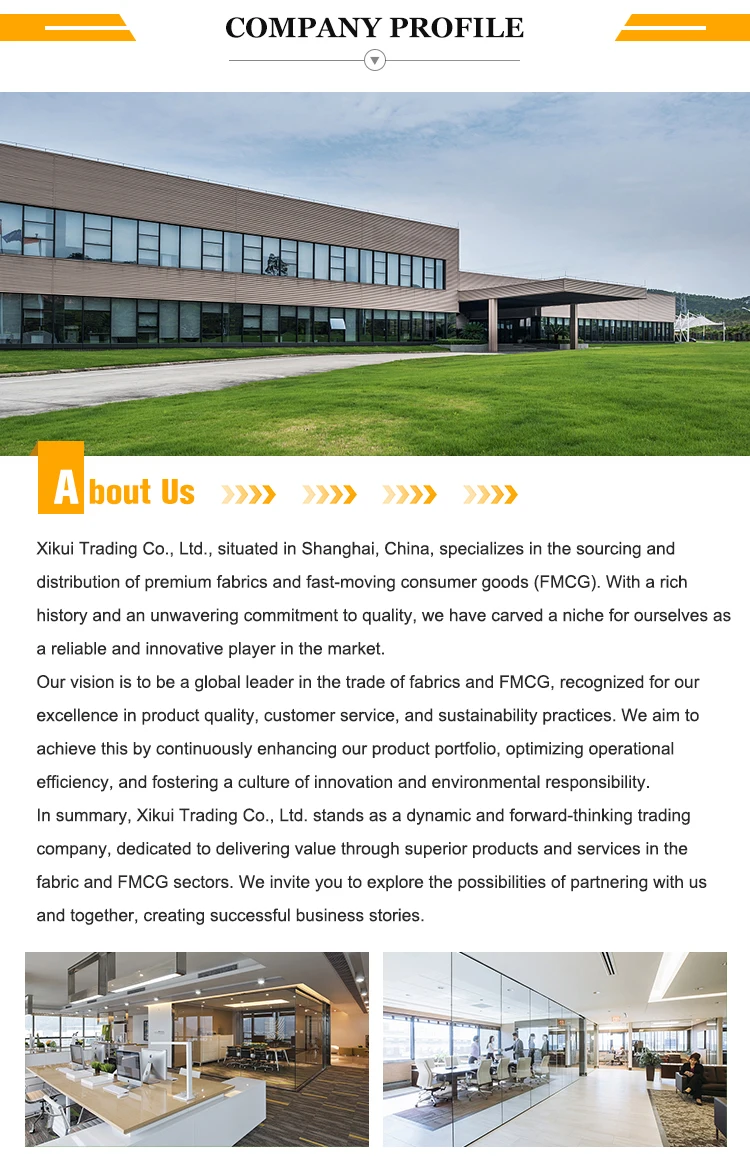 A: We are a cross-border trading company specializing in fabric, with 15 years of professional and reliable experience in the industry. While we do not operate as a factory, we have established strong partnerships with multiple factories that collectively possess over 100 knitting and weaving machines and 800 air-jet weaving machines. This ensures both quality and timely delivery for our clients.