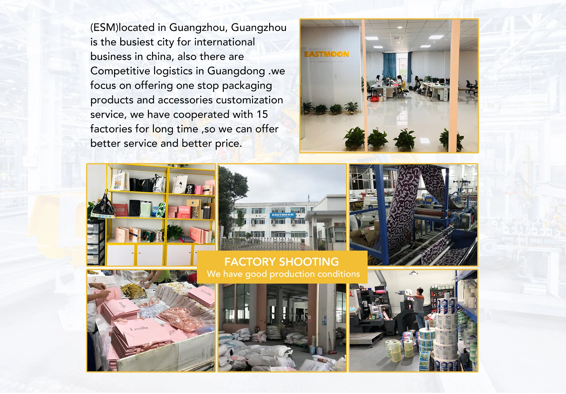 Eastmoon (Guangzhou) Manufacturing and trading co. LTD located in Guangzhou GUANGDONG ,we focus on customizing garment accessory \\garment \\gift and related products for clients,we are a rapidly developing company can offer good products and services.