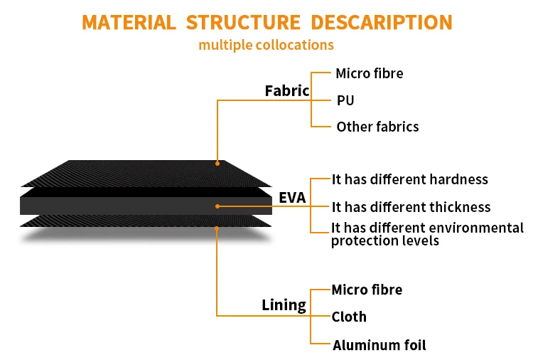 *Material | EVA,spandex,oxford,nylon coated pu material,lycra,velvet,coral fleece.Wide Range For Your Selection. | |
