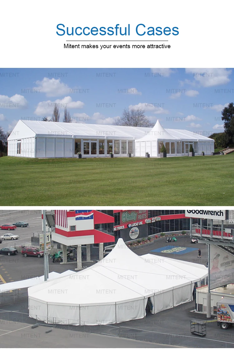 6) Q: How to choose the size of the tent? A: You can contact with MiTent sales team, telling us what kind of event you are going to hold, and how many people you are going to accommodate. We will offer a suggestion according to your event usage and required capacity.