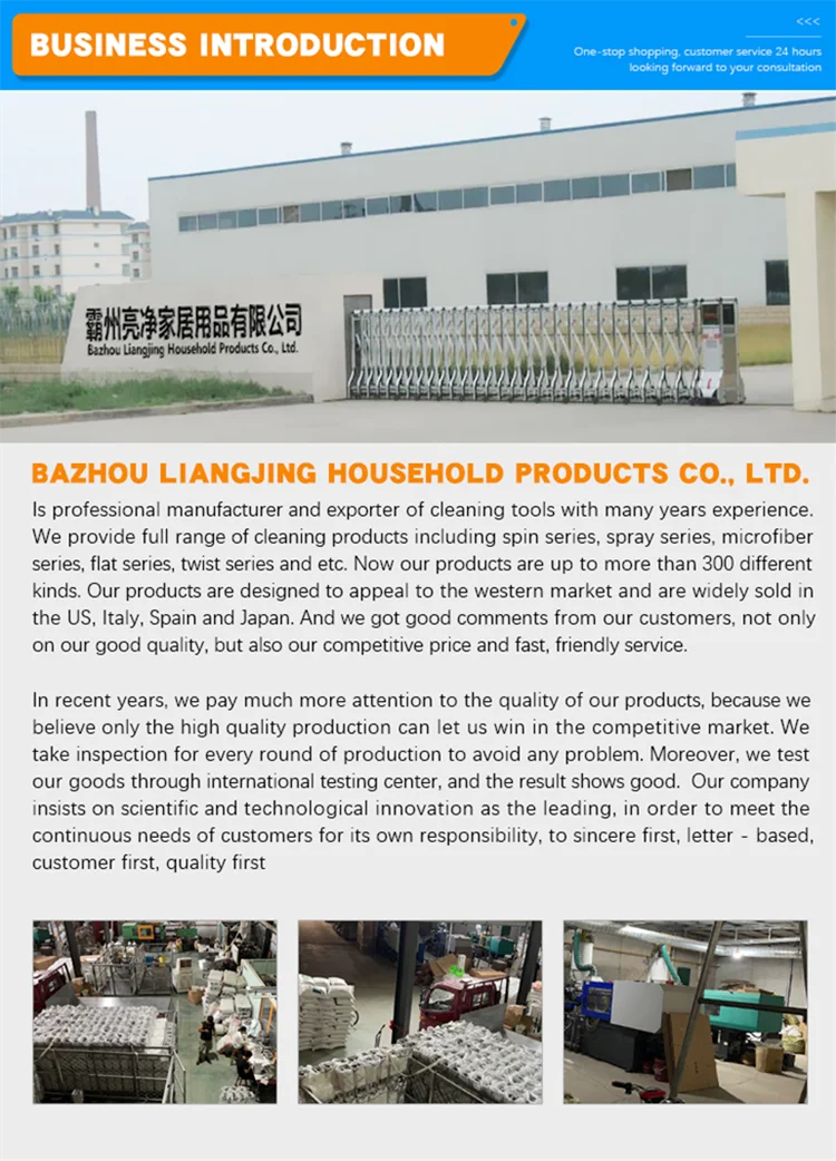 We, LiangJing Industry & Trade Co.,Ltd. are a young and energetic manufacturer of mop, magic mop, rotating mops, easy mop, and go mop, flat mop, cleaning mop and PVA mop so on.
