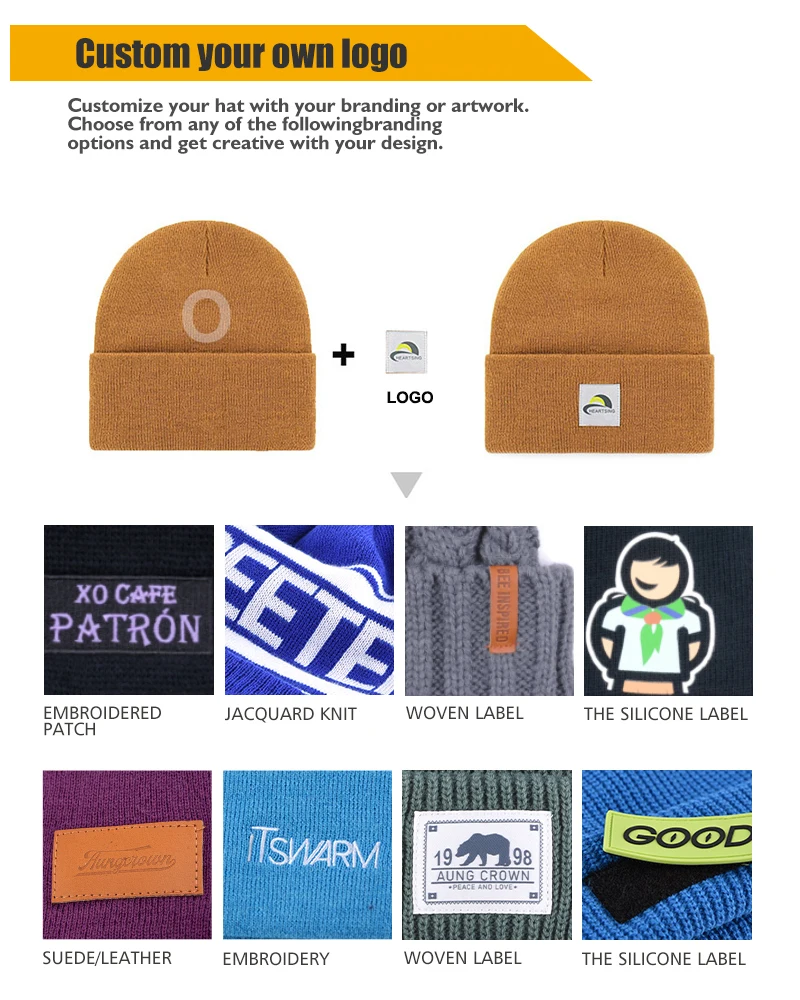custom 100% acrylic custom logo cuffless jacquard beanie hat | ||