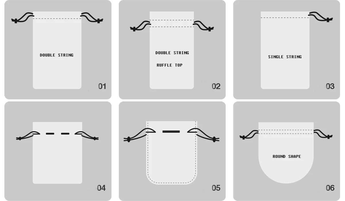 Bag Style | With string, with handle, with flap, with divider, with round or square bottom, backpack | |
