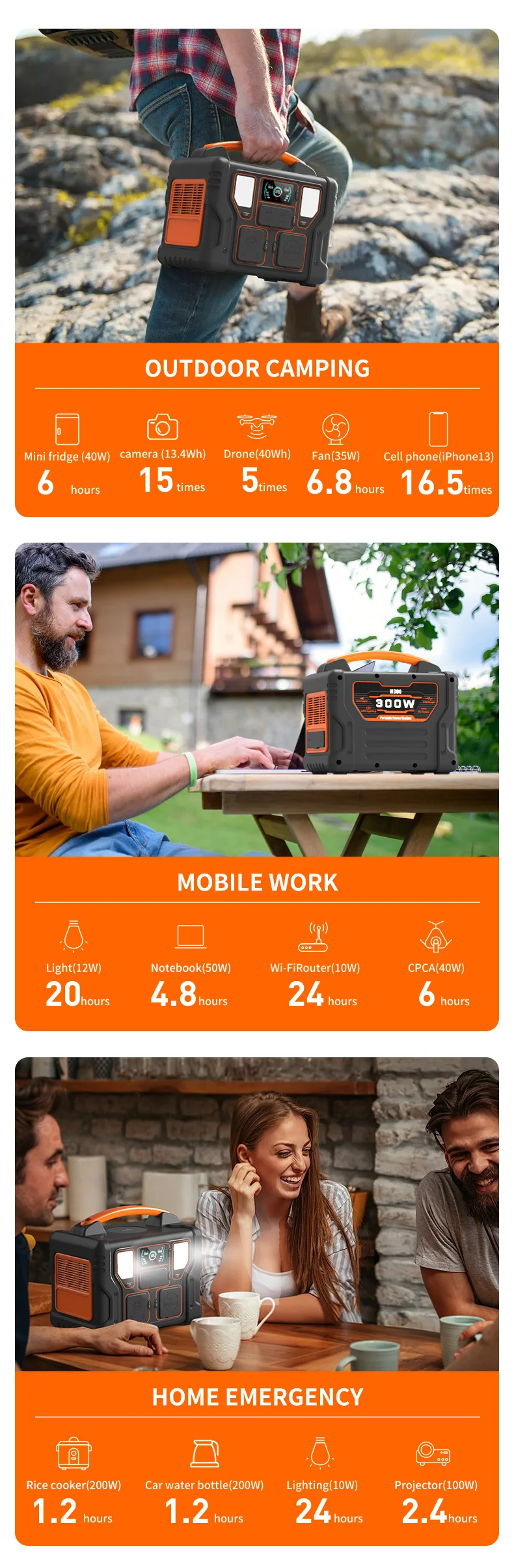 Apply To | Home emergency, small household appliances, digital products (such as UAV, mobile phone, computer, notebook, camera, handheld head, car refrigerator, etc.), long-distance self-driving travel, outdoor camping, lighting, picnic, wild fishing, environmental monitoring, geological exploration, car electricity, medical equipment and other scenes |