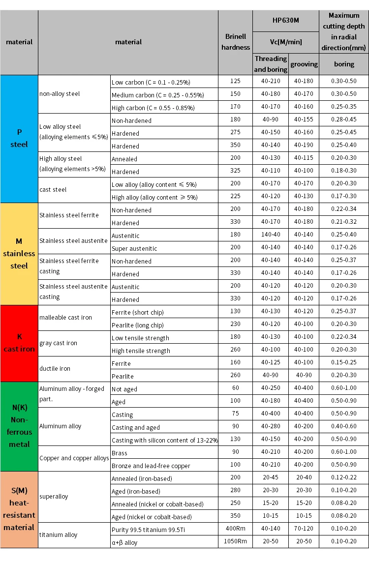 Application | Various hardness steel parts, stainless steel, cast iron, non-ferrous metals. | ||||||