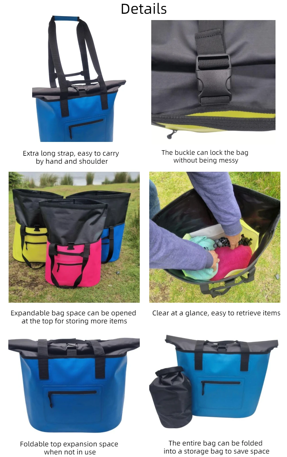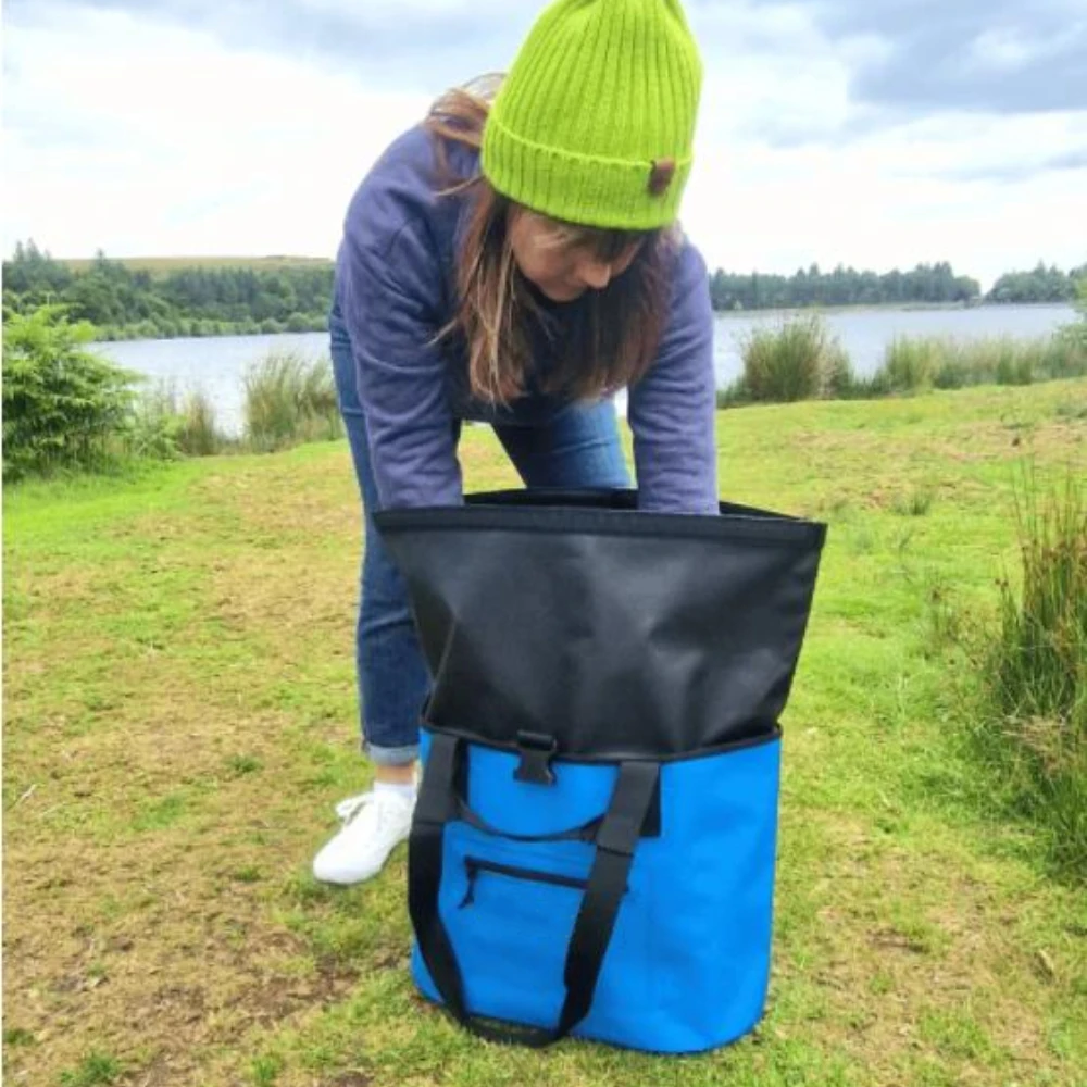 *Features | *Fully waterproof. *Roomy 40L capacity. *Splash-proof zip pocket on front for small items. *Thermally lined pocket. *Comfy shoulder strap with padding or grab handles. *Its firm base enables it to free stand. |