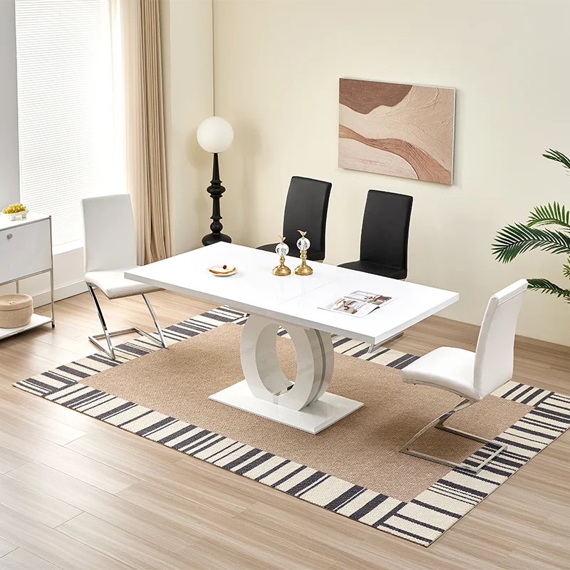 New Modern Luxury 200cm White Dining Table Set Elegant Design Dinning Base Extendable Wood Dining Table Set for 6 8 10 seater