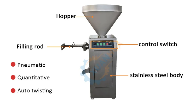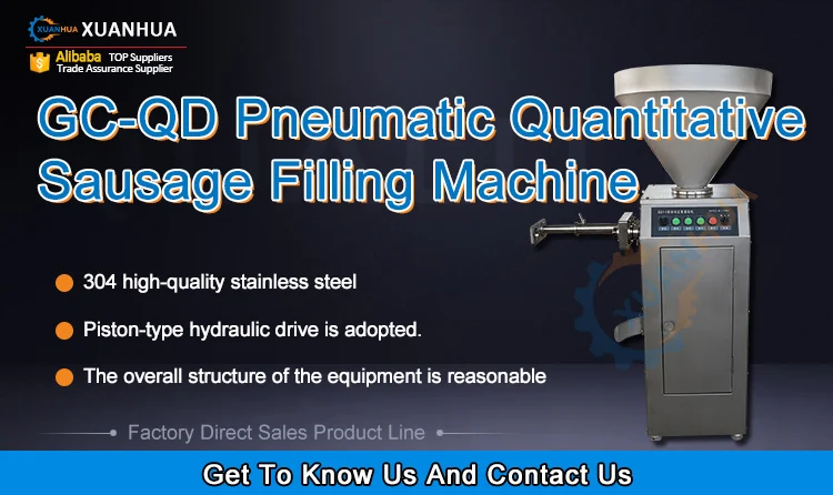 This series of machines can be used to fill various sausages such as ham sausage, meat sausage, red sausage, vegetable sausage, powder sausage and Songjiang sausage, etc. This machine can fill large, medium and small sausage products of various specifications, and is suitable for filling animal casings, protein casings and plastic casings.