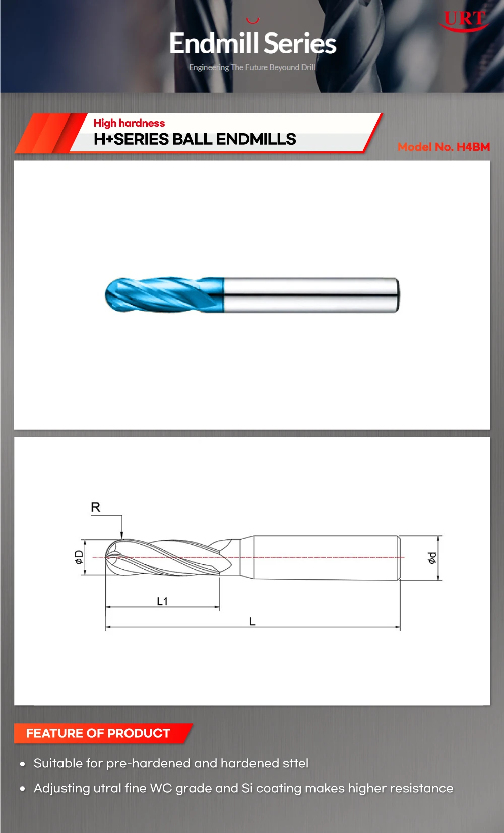 Product Name | High Performance Endmill Series Best Selling Product Cheap Price Korean Manufactured URT H+SERIES BALL ENDMILLS (H4BM) |