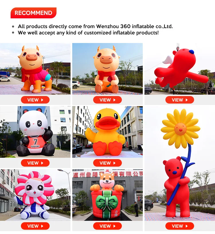Why choose us? | We have a creative team and have all tools and techniques to create high-quality inflatable products. We can make huge inflatable cartoons. We are the best inflatable manufacturer in China. We have customized large inflatable products for many domestic and foreign IP companies, and have won unanimous praise from customers! We can also make inflatable arches, inflatable tents,inflatable cartoons, inflatable balls, inflatable products with LED lights, etc.! If you want to customize inflatable products,just tell me what you think, we will first carry out 3D design , and after your confirmation, we start manufacturing. | |||||