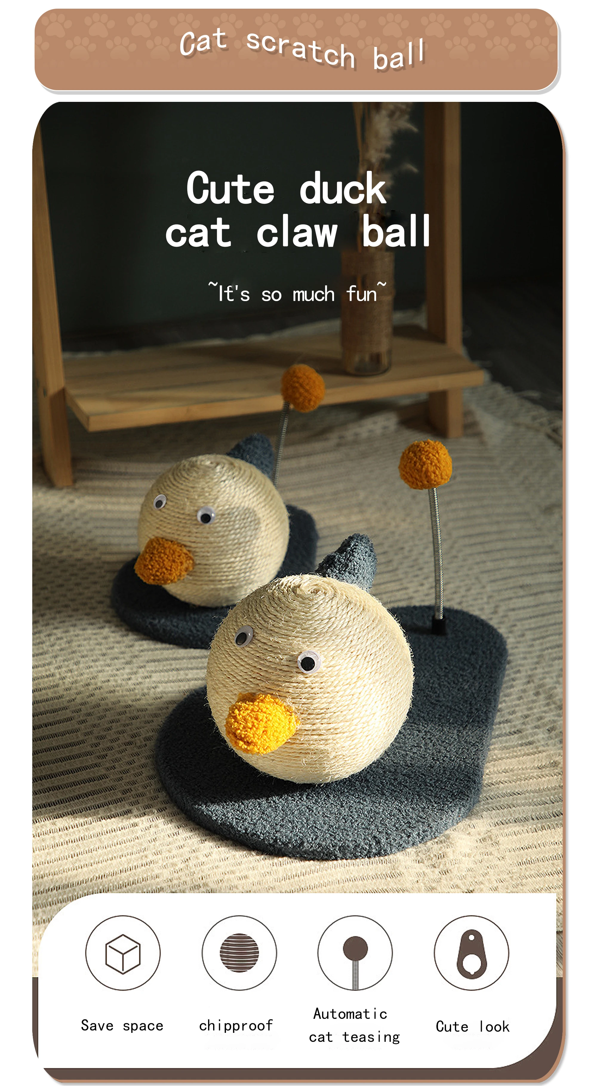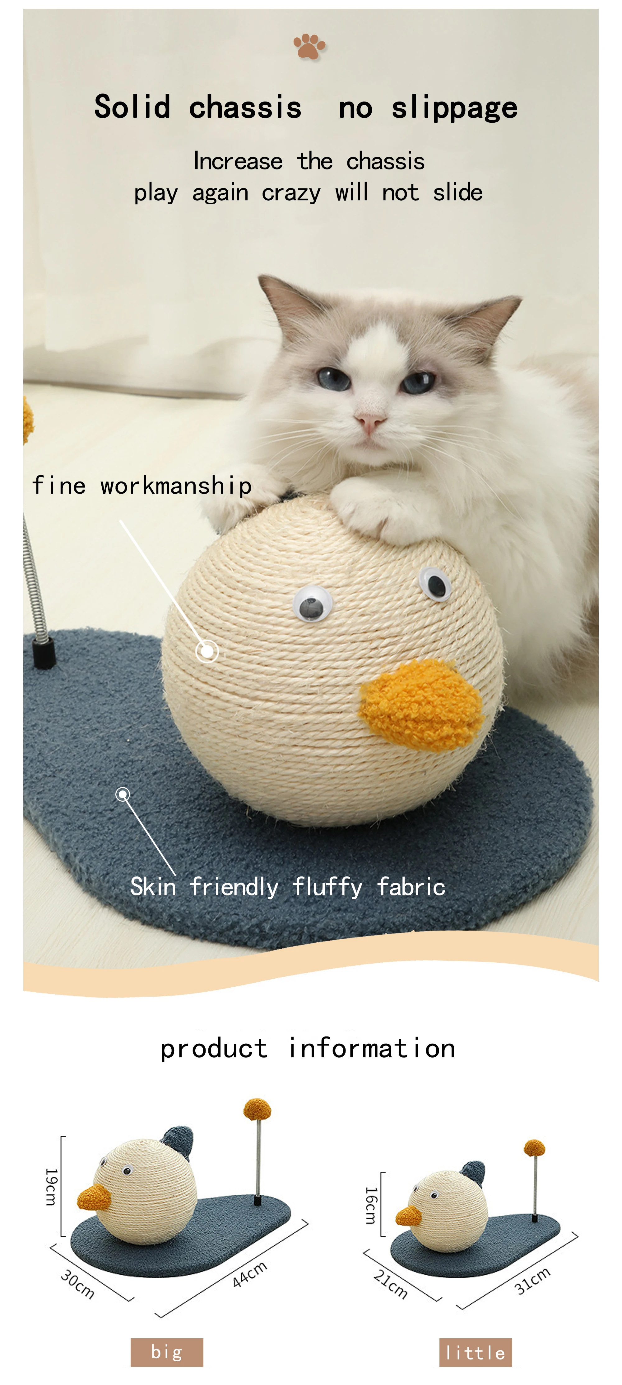 Featuring interactive toys, this scratch post is crafted to get involved your feline friends for hours. lt's purrfectly sized for all cats, and goodly reduces loneliness when you're not home. Designed for the safety of your adorable cats.it's a perfect fit for their scratching and sharpening needs.