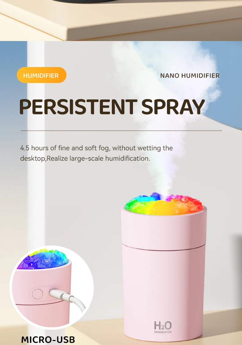 220ml Mini Portable Led Light Humidifier H2o H20 Spray Ultrasonic Atomizer Cool Mist Car Usb home Air Humidifier