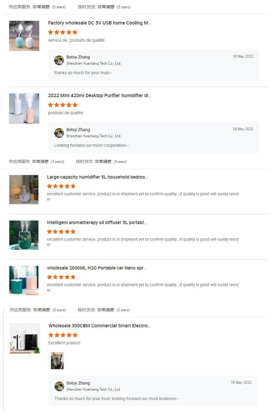 Shenzhen Yuanliang Tech Co,.ltd was founded in 2017.04 and is located in Shenzhen Which is the biggest export and Trading city in Guangdong Province ,China. We enjoy convenient transportation, the most complete raw materials Support ,the rich factory supply chain and High Technology Support. With export license, we export products to North America,Europe,Asia and Middle East. As a professional home Appliance(Including Air Humidifier,Aroma Diffuser,Fan,Car Vacuum Cleaner ect)supplier, we have excellent teams who focus on product development & design, quality control & inspection and company running. In order to supply the satisfactory products and services to our customers, we had built a modern quality management system which is in strict accordance with international standards. Very strict QC Department to keep each item with good condition before Shipping and Also Very professional After-service Department For Customer's Problem Soluation. Besides, because of large overseas markets, most of our products have got CE, ROHS, KC, PSE etc certificates, OEM$ODM Are appreciate. Wheather selecting a current product from our catalog or seeking engineering assisatance for your application,you can talk to our customer service center about your sourcing requirements. We are glad to work together with you and finally bring you the satisfied products and Long-term Cooperation.