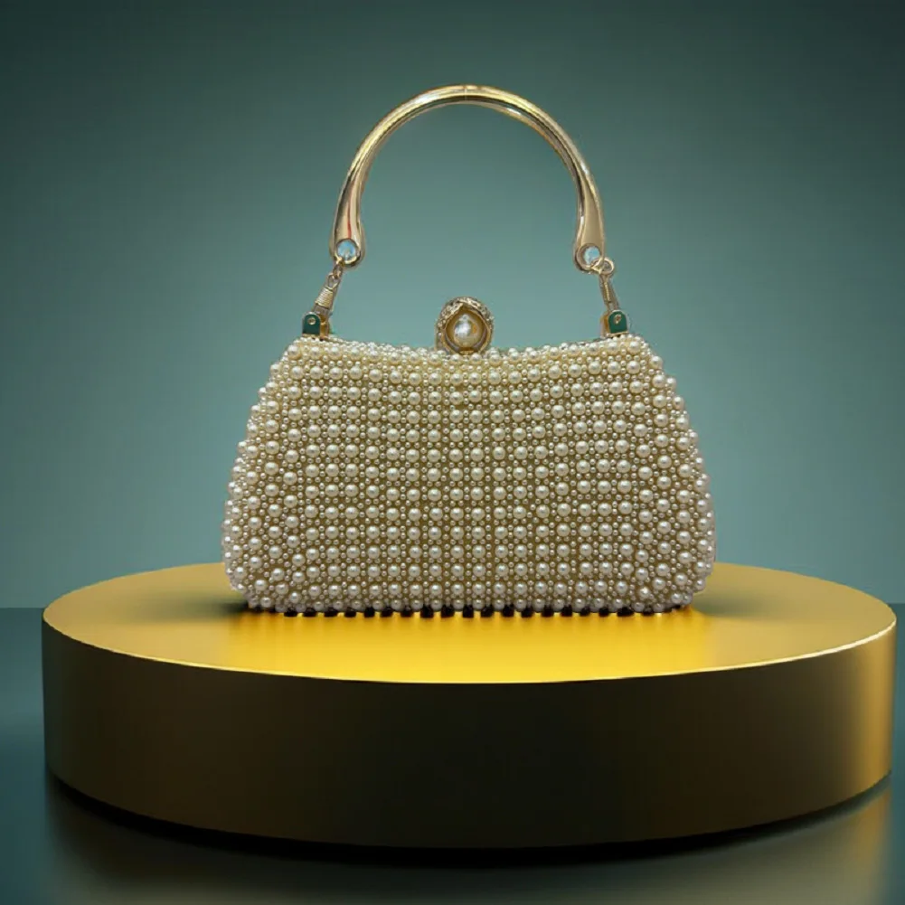 Gorgeous women clutch bags pearl dinner dress evening bag clutch purse with metal handle dinner handbags for women