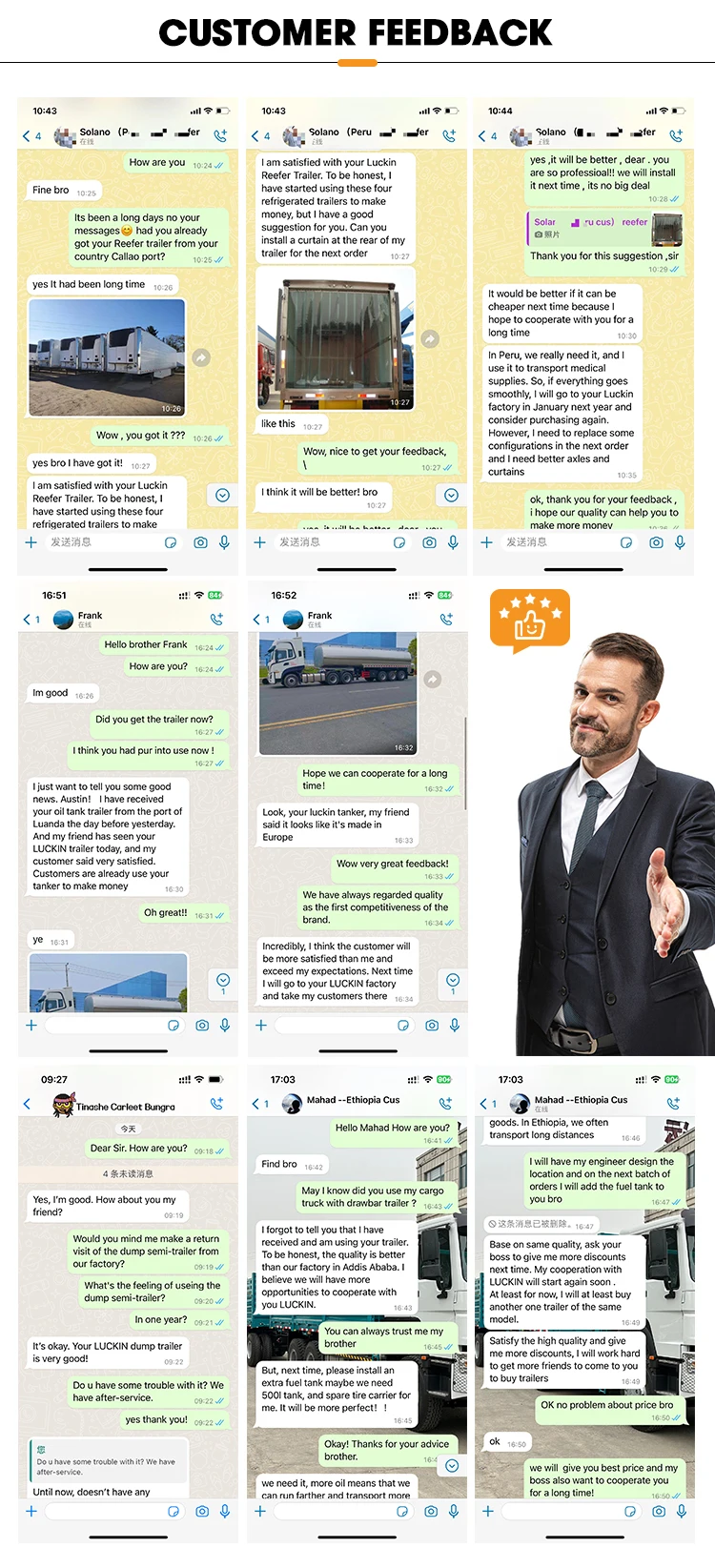 Other Configuration | (1) Automatic air conditioning (2) 800L aluminum fuel tank, suspension 10/11 (3) Four-point air suspension cab, with pedal ladder (4) 180Ah battery, 10/100,000km long oil change cycle (5) Integral anti-splash fender, long maintenance oil filter (6) Upgrade TRW steering upgrade, antenna variable speed control lever (7) Right turn sound prompt, safety belt wearing reminder (8) Brake liner replacement alarm , fire extinguisher and support | ||||||