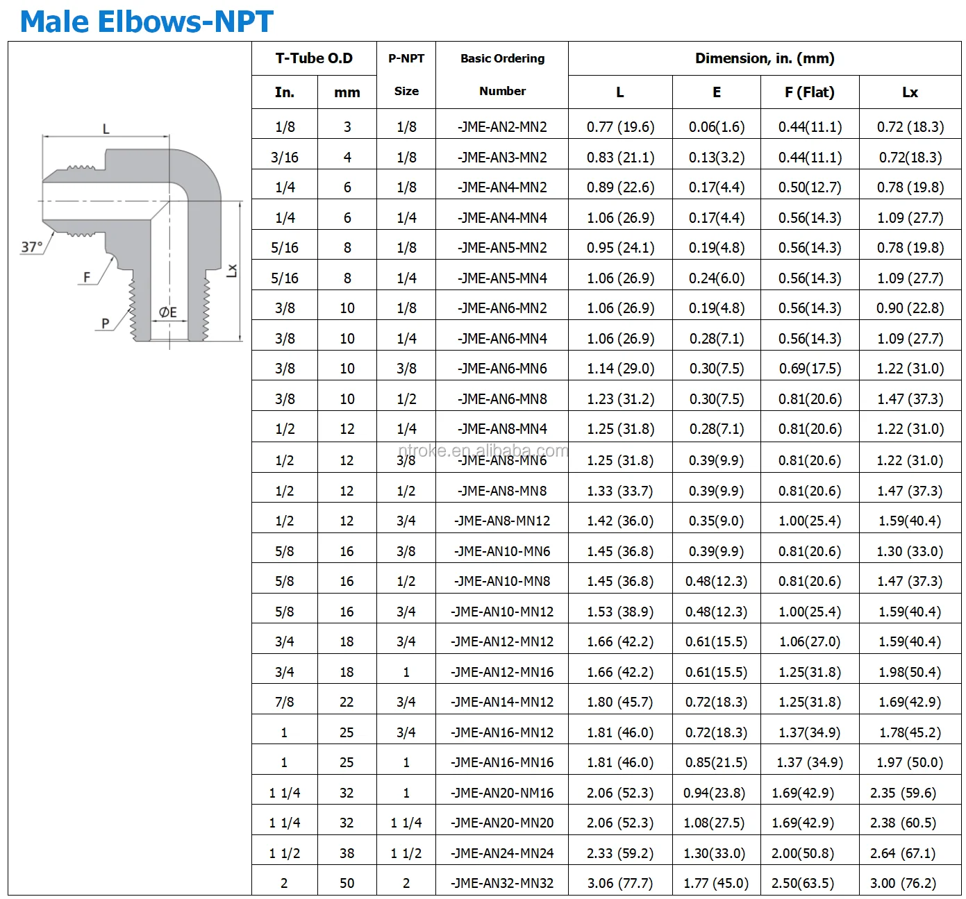 37 Degree Flared Tube Fittings Union 90 degree Male Elbows Stainless Steel or Carbon Steel