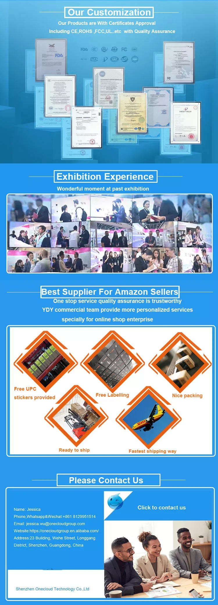 Q5: Can you offer Amazon FBA shipping and sticker service? Have you any experience on Ebay, Amazon?