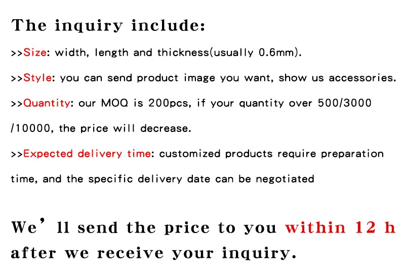 A:we’ll quote for you within 12 hours after we receive your inquiry.