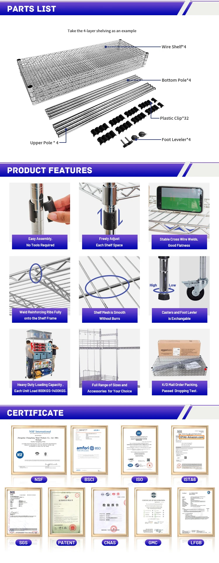 Product Name  6-Tier Heavy duty Wire Shelving