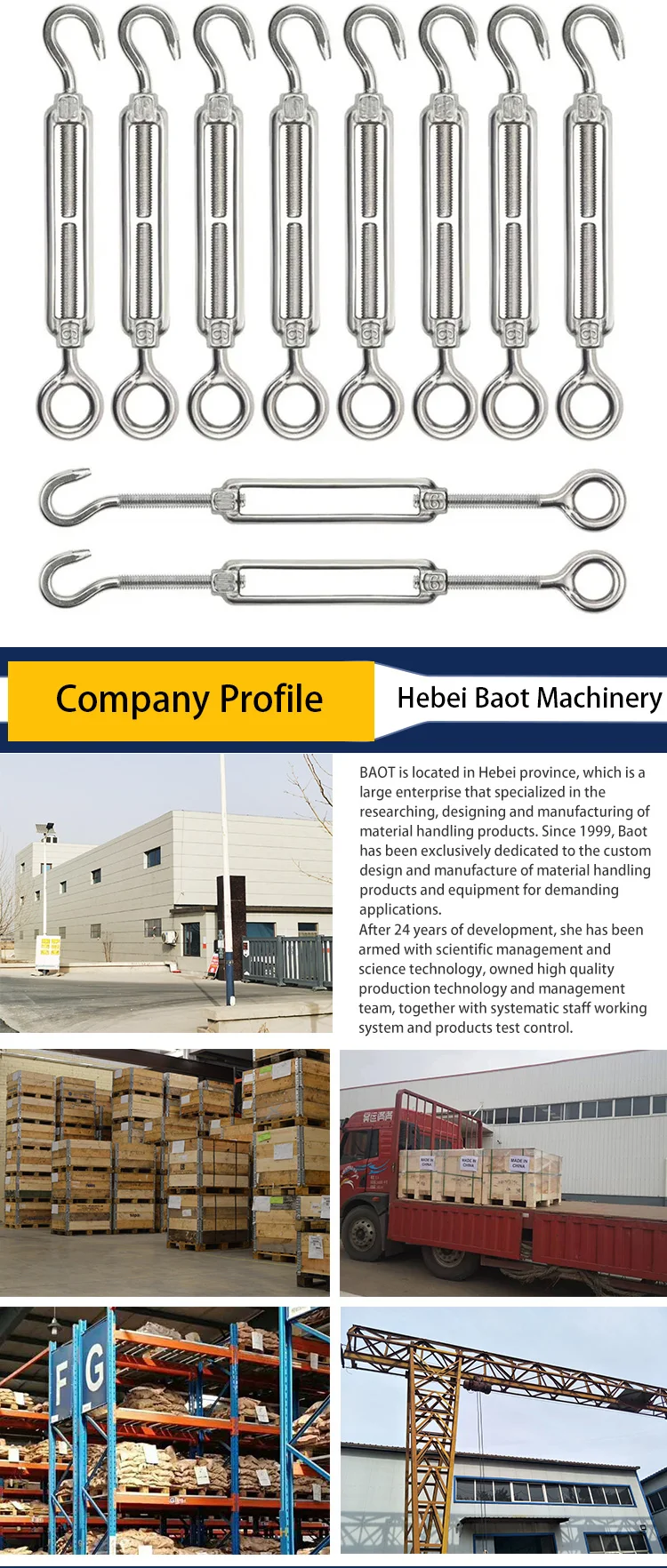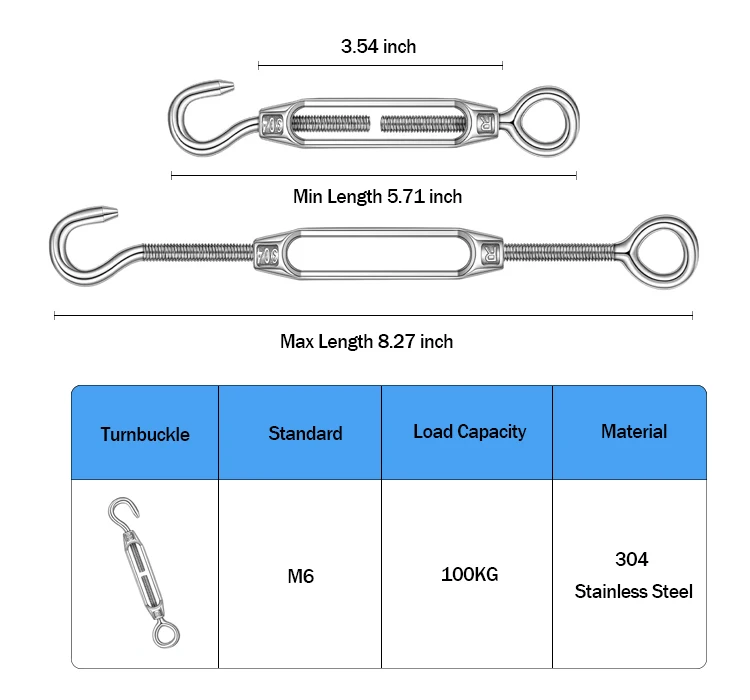 Eye&Hook European Turnbuckles | Standard | A (mm/Inch) | B (mm/Inch) | C (mm/Inch) | WLL (KG/IB) |