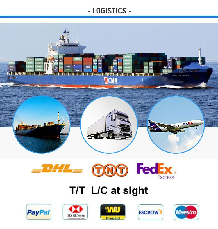 PayPal, Bank Wire(T/T), Alibaba Trade Assurance, Western Union, MoneyGram, L/C etc.