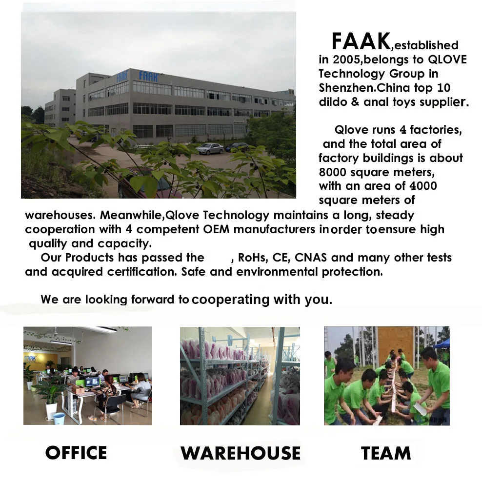Established in 2005, Qianai Technology group is one of the adult product company pioneers. Sticking to the operation philosophy of “integrity-based, customer-first” and moving forward with a notion of creativity, we aim to produce products that are customers-oriented. After years of development, being one of China’s biggest adult product companies, we mainly focus on research and development, manufacturing and marketing adult products.